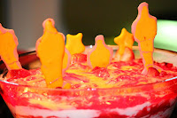 The trifle was then topped with Oscar royal icing creations. I drew the oscar statuette on parchment paper and them piped royal icing on them. Then I let them dry for over 24 hrs. Once dry, you have to be really careful at peeling them from the paper, which I didn't do. So unfortunately most of them broke apart. Look closely and you'll see the patchwork. ;) Also, I stuck these figurines in strawberries that were slightly slit to make them stand on the trifle pudding. Else, they would just sink.